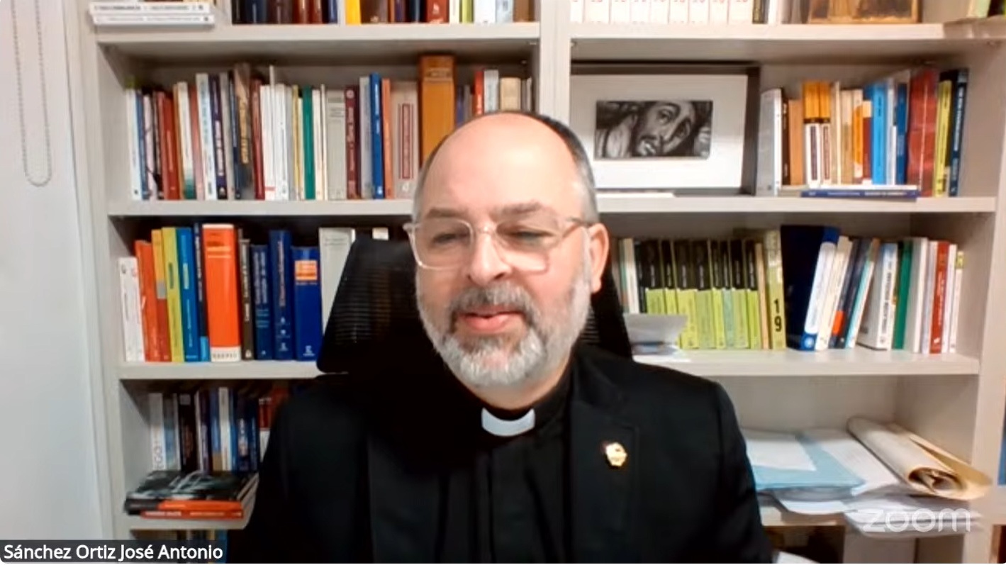 A continuación, intervino el Director del ITSE y Provicario General de la Diócesis, D. José Antonio Sánchez Ortiz, que presentó al ponente de la tarde, el profesor Dr. D. Rafael Amo Usanos, de la Universidad Pontificia Comillas (Madrid).
