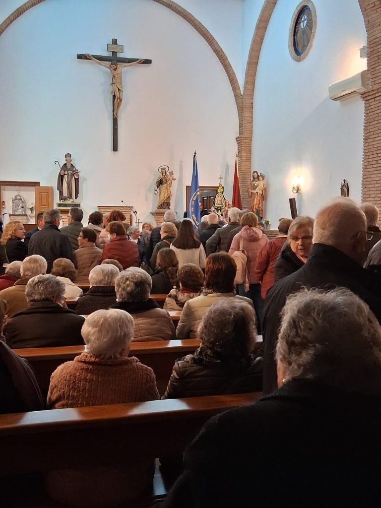El miércoles 18 fue un día grande, repleto de actos litúrgicos en la ermita: rezo del Santo Rosario e imposición de la ceniza a los niños/as y mayores que lo desearon. Sobre las 11 de la mañana la imagen salía de la ermita para dirigirse al Centro de Mayores “Vega San Juan”, emotiva y entrañable la visita en la que no faltaron ni las lágrimas, súplicas, ruegos ni las oraciones a su Virgen. Los mayores entregaban un precioso cuadro de la Morenita pintado por ellos.