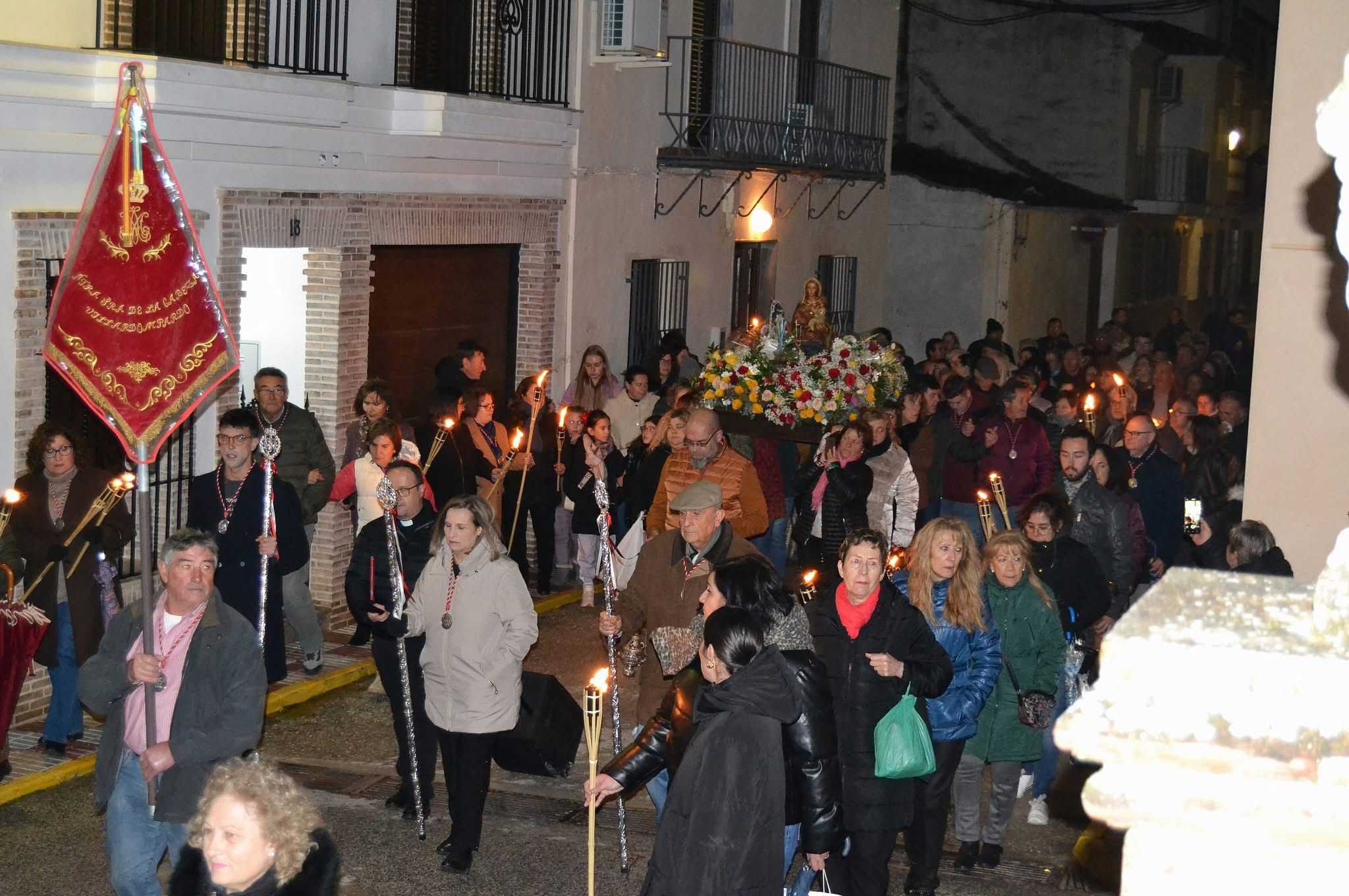 Enmarcada en la Misión Mariana Diocesana, la estancia de “La Morenita” ha dejado una huella profunda en los vecinos y fieles que participaron activamente en los actos programados entre el 13 y el 15 de febrero. Los actos comenzaron la noche del viernes 13 de febrero, cuando a las 21:00 horas la imagen fue recibida en la Ermita de San Roque. En una atmósfera de recogimiento, se inició una multitudinaria procesión de antorchas que trasladó a la Reina de Sierra Morena hasta el Templo Parroquial de Nuestra Señora de Gracia, donde fue custodiada durante su estancia.