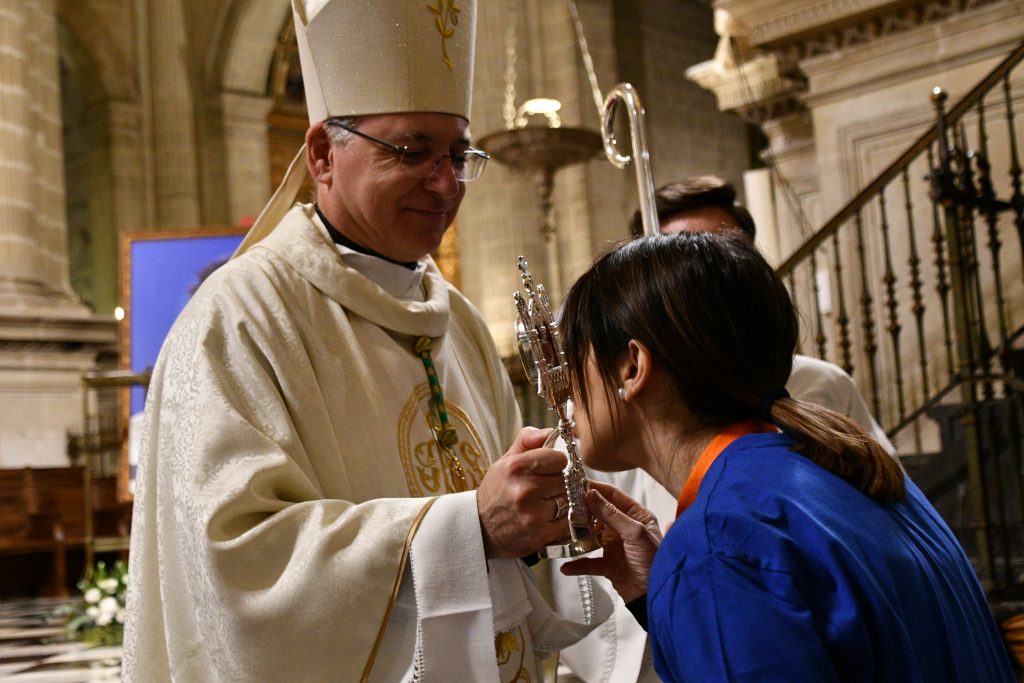 Al finalizar la Comunión, y como parte de la celebración jubilar, D. Antonio Blanca, llevó hasta el presbiterio el Santo Rostro, ante el que se pidió por las intenciones del Santo Padre. Posteriormente, el Pastor diocesano impartía, con esta reliquia, la bendición solemne.