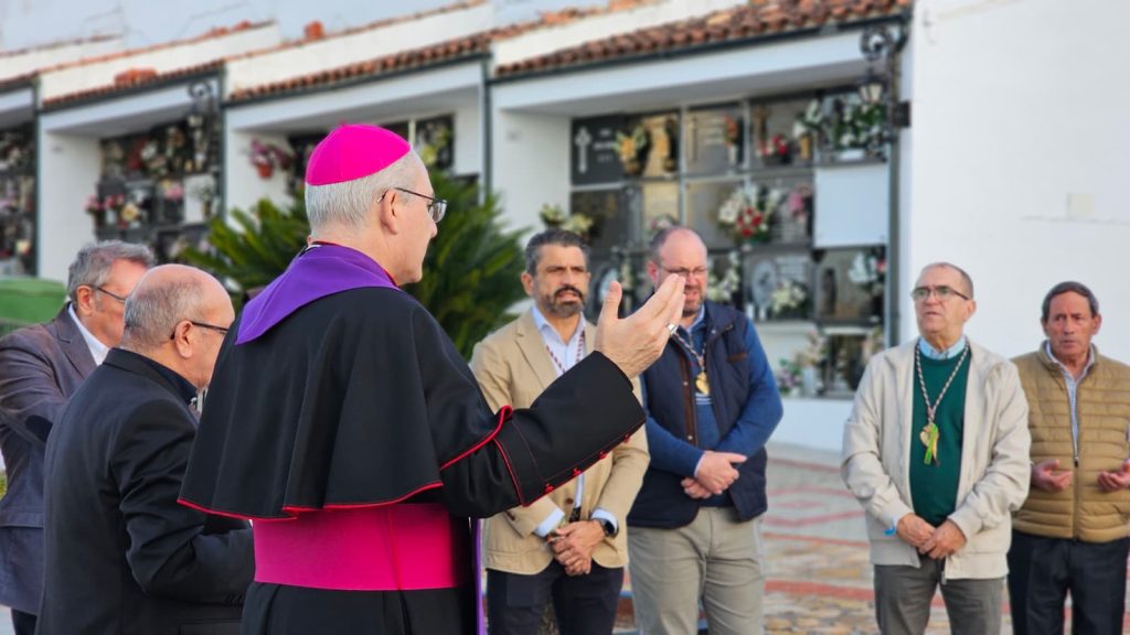 Don Sebastián, tras visitar las dependencias de la parroquia y estar unos minutos ante la imagen de San Amador, se dirigió acompañado de los párrocos de la localidad al cementerio municipal, donde fue recibido por el gerente de la empresa Cementerio Parque Martos, Jerónimo Jiménez, y el personal del cementerio. El recorrido comenzó orando ante el sagrario de la capilla del cementerio. A continuación, se dirigió al altar con la imagen de la Inmaculada, que preside el patio central del camposanto, donde realizó una oración por el eterno descanso de las personas enterradas en este lugar.