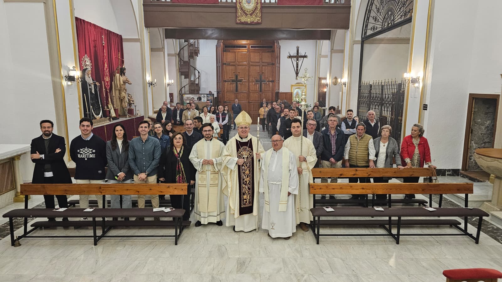 La celebración de la Misa estacional, concelebrada con el párroco, D. Manuel García, y su secretario, D. Francisco Javier Cova, culminó la jornada. Don Sebastián se mostró satisfecho del encuentro con esta comunidad. Destacó en su homilía que la presencia de jóvenes en esta comunidad parroquial es necesaria y fortalece el trabajo de los consejos, de Cáritas o de las cofradías, y felicitó de una manera especial a la Cofradía de Jesús Resucitado por su participación en la Magna.
