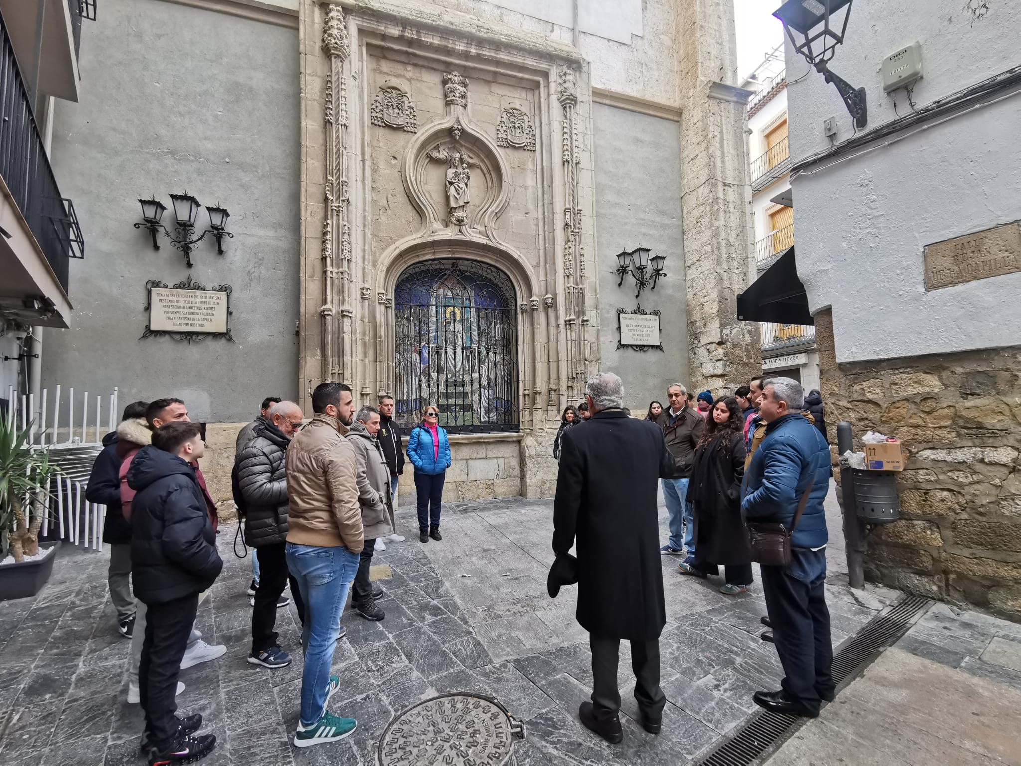 Pero claro había guías locales que nos estaban esperando y era necesario cumplir con la programación. Por lo que llegamos al interior de la Parroquia de San Ildefonso, que, a través de Ángel Marchal Jiménez, Hermano Mayor del Resucitado, nos fue desgranando la historia y el devenir artístico de este Templo Jaenero, de los más visitados de la ciudad, poniendo hincapié en el descenso de la Virgen de la Capilla a nuestra ciudad de Jaén. Finalmente se visitó el Camarín de la Virgen, pudiendo tocar el manto de nuestra Patrona.