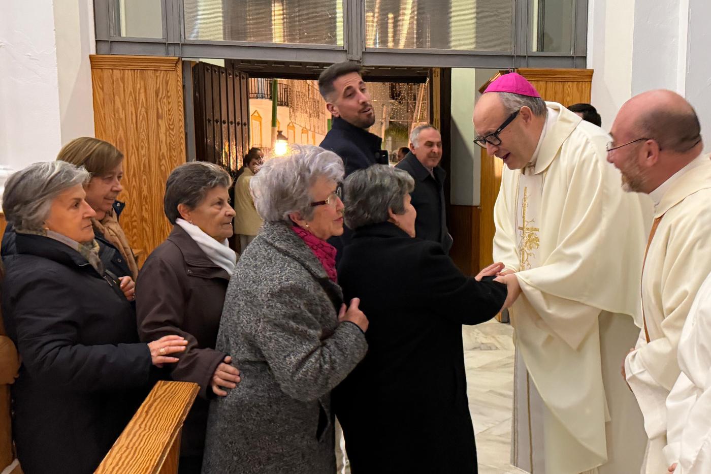 D. José Antonio Satué ha visitado la parroquia de Alhaurín el Grande «para rezar con la comunidad y mostrar su cercanía después de los trágicos sucesos acaecidos en el municipio que nos han dejado conmocionados esta Navidad», explica el párroco Andrés Merino.