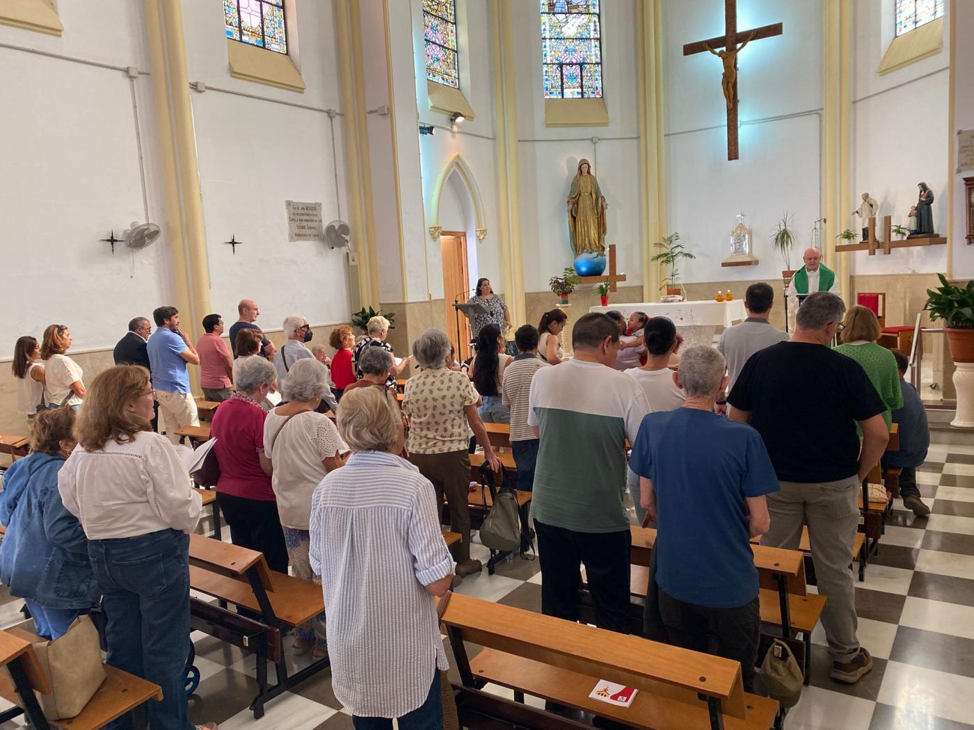Convocados por el delegado episcopal de Cáritas, Antonio Collado, participantes de los proyectos, voluntarios y trabajadores se han reunido en la iglesia del colegio San Manuel de las Hijas de la Caridad, en calle Fernán Núñez.