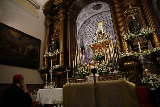 La vista a las comunidades religiosas también estuvo presente en la Visita Pastoral. La visita a la guardería infantil de las hermanas mercedarias del Santísimo Sacramento, perteneciente a la fundación educativa diocesana “Santo Rostro”, supuso un encuentro con los niños de la guardería, con sus monitoras y las religiosas. La superiora de la comunidad, hermana Blanca, acogió al Obispo y tras unos momentos de oración en la capilla ante el Santísimo Sacramento expuesto en la custodia, fue visitando las dependencias y aulas y tuvo un encuentro con los niños en el patio. También visitó el convento de las hermanas de la Cruz y tras unos momentos de oración en su capilla, se reunió con las religiosas para posteriormente saludar a las ancianas internas en la residencia de mayores que atienden las hermanas de la Cruz.