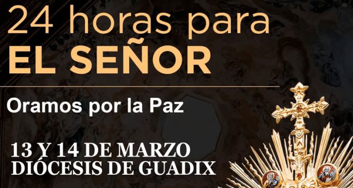 Este viernes 13 y el sábado 14 de marzo, la Iglesia celebra, por iniciativa de la Santa Sede, las «24 horas para el Señor». La diócesis de Guadix invita a que la Jornada de este año sea una ocasión para unirnos en oración por la paz. De esta manera, se suma a la petición del papa León XIV, que en su intención de oración para este mes de marzo nos pide rezar «por el desarme y la paz».