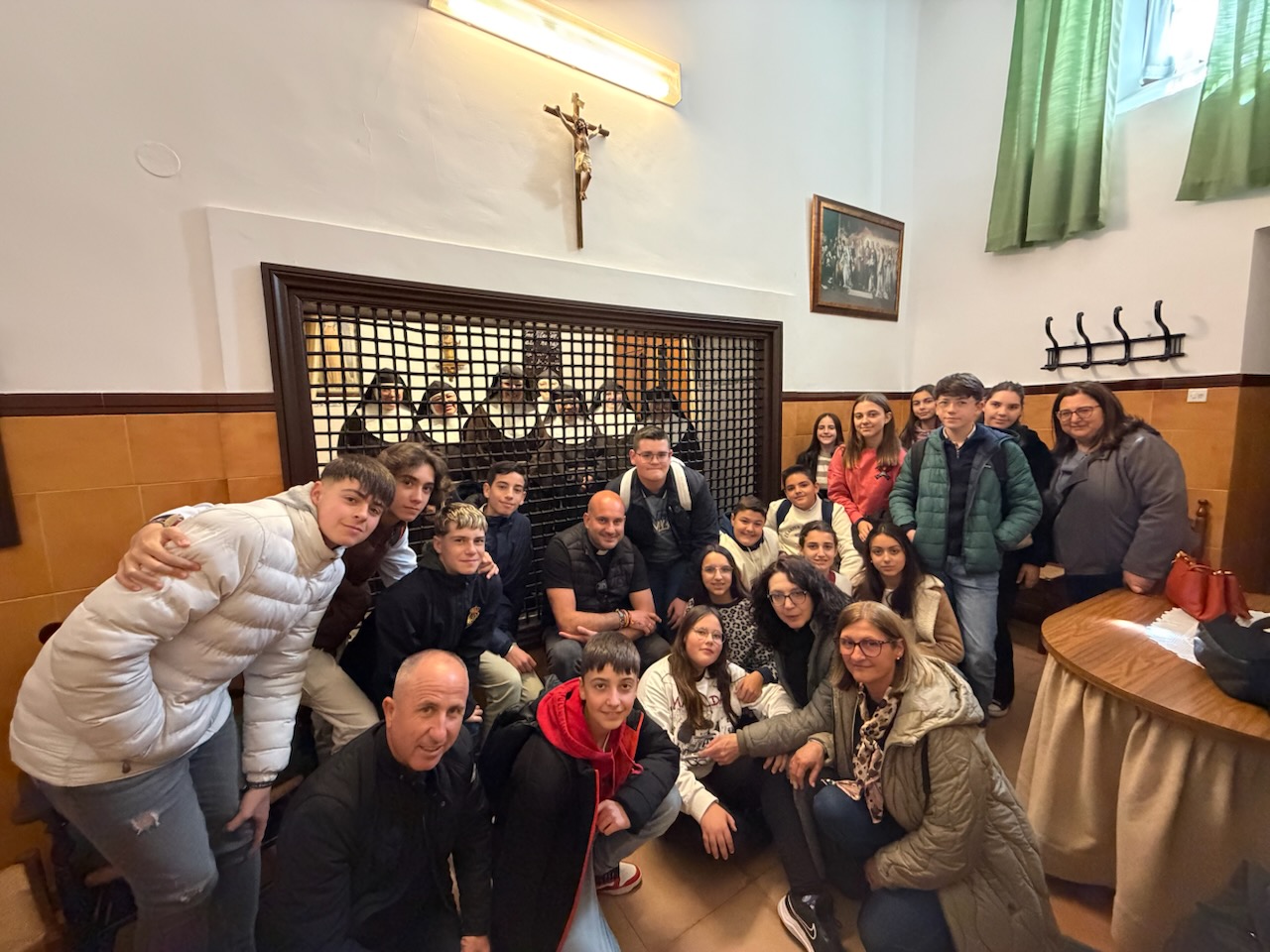 Uno de los momentos más especiales de la jornada fue, sin duda, la visita al convento de las Hermanas Clarisas. Allí pudimos hablar con ellas, hacerles preguntas y conocer un poco mejor cómo es su vida. Para muchos de los chavales era la primera vez que veían de cerca a unas monjas de clausura, así que fue una experiencia muy curiosa, cercana y enriquecedora.
