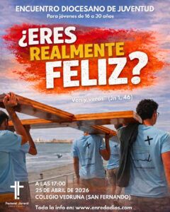 El Colegio Vedruna Nuestra Señora del Carmen de San Fernando será la sede del Encuentro Diocesano de Juventud 2026, que se celebrará el próximo 25 de abril a partir de las 17.00 horas. La cita está dirigida a jóvenes de entre 16 y 30 años y contará con la presencia del administrador apostólico de la diócesis, Mons. Ramón Valdivia.