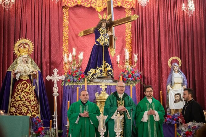 En su homilía, a la luz del Evangelio del día – «Este es el Cordero de Dios» -, Don Sebastián invitó a los fieles a contemplar en Nuestro Padre Jesús Nazareno el rostro de Cristo que se entrega por amor y camina junto a su pueblo, subrayando el valor de la Eucaristía como centro de la vida cristiana y fuente de unidad para la comunidad parroquial y cofrade.