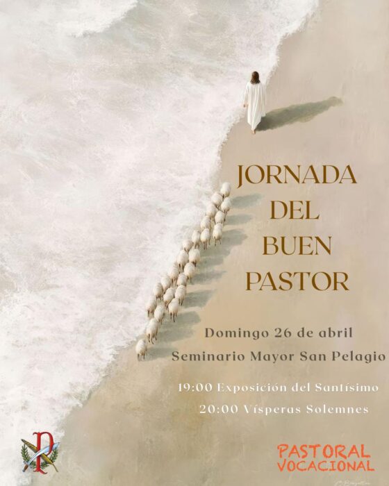 La Pastoral Vocacional está preparando, un año más, la Jornada del Buen Pastor, que se celebra cada año el cuarto Domingo de Pascua, coincidiendo con la jornada de oración por las vocaciones y la jornada de vocaciones nativas. Como comunidad cristiana estamos todos invitados a orar juntos en la jornada de puertas abiertas que tendrá lugar en la capilla del Seminario Mayor San Pelagio el domingo, 26 de abril, a partir de las 19:00 horas. A esa hora habrá exposición del Santísimo y una hora después el obispo de Córdoba, monseñor Jesús Fernández, presidirá el rezo de Vísperas, cantado por el Seminario.