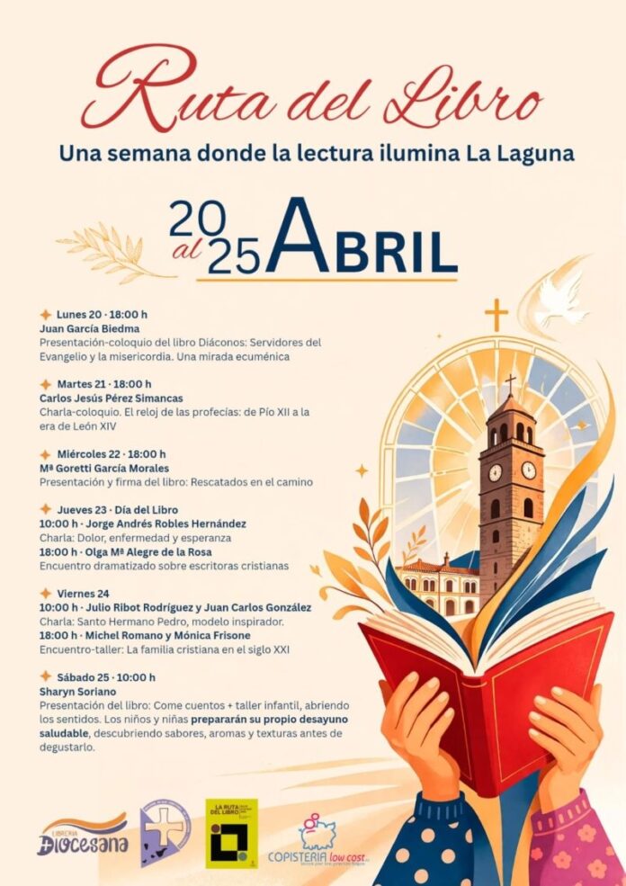 El día 23 de abril se celebra el Día del Libro. Por tal motivo, del 20 al 25 tendrá lugar la tradicional Ruta del Libro, una iniciativa del ayuntamiento de La Laguna y en la que este año se une la Librería Diocesana con un enriquecedor programa.