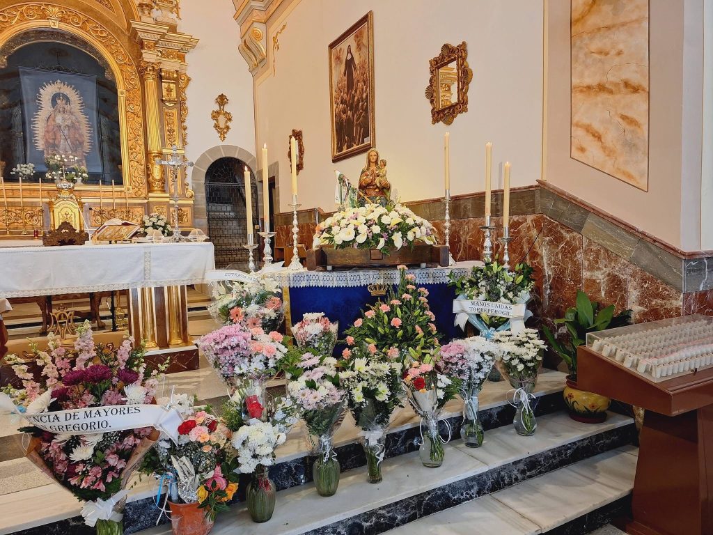 Uno de los momentos más destacados de la mañana tuvo lugar a las 11:00 horas, con la ofrenda floral a la Virgen de la Cabeza, en la que participaron numerosos fieles portando flores, ramos y centros, como muestra de cariño y devoción. En este acto tan significativo se sumaron también los residentes de la Residencia de Mayores de las Hermanas de los Desamparados y la Residencia de Mayores San Gregorio, de la localidad, cuya presencia aportó un profundo valor emocional a la celebración. A continuación, se celebró la Santa Misa, vivida con especial intensidad por todos los asistentes.