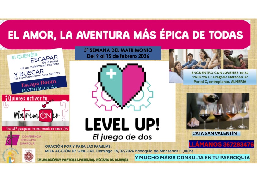La Semana del Matrimonio concluirá con la celebración de la Santa Misa de acción de gracias, que tendrá lugar el domingo 15 de febrero de 2026, a las 11:00 horas, en la parroquia de Montserrat, en Almería.