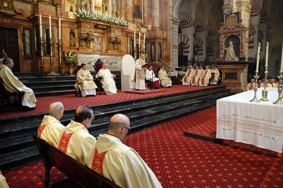 Tras detallar el rito de bendición, ha dado las gracias a Dios porque “Cristo no sólo ha conferido a todo el pueblo santo la dignidad del sacerdocio real, sino que también elige a hombres de este pueblo para que, por la imposición de las manos, participen de su sagrada misión”. “Ahí está la identidad del presbítero”, ha añadido, antes de puntualizar que “no somos funcionarios de lo sagrado, ni gestores religiosos, ni animadores de una comunidad meramente humana. Somos, por pura gracia, ministros de Cristo para el servicio del pueblo santo de Dios”.