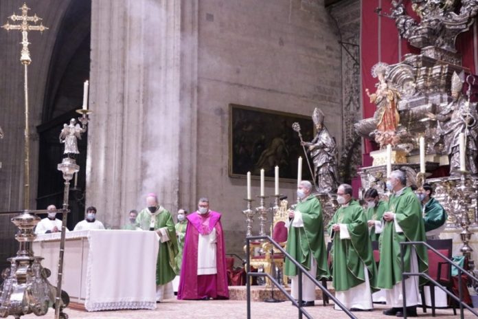 La Misa ha estado presidida por el Arzobispo hispalense, monseñor Juan José Asenjo, y concelebrada por el delegado episcopal para la Vida Consagrada, José Ángel Martín; y el vicario general, Teodoro León, así como por otros sacerdotes vinculados a distintas congregaciones religiosas.