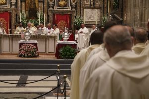 La liturgia reserva para esta misa una marcada riqueza simbólica, con momentos especiales. Entre ellos, la consagración del santo crisma y la bendición de los oleos que se usarán en las parroquias de la Archidiócesis durante todo el año. Además, esta misa supone la visibilización de la comunión del presbiterio con su pastor, así como la oración del pueblo fiel por sus sacerdotes. En su homilía, el arzobispo ha destacado que esta mañana se renueva “el sí que pronunciamos el día de nuestra ordenación sacerdotal como respuesta a la llamada de Dios”.