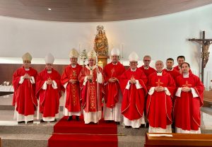 Previamente se ha celebrado la Eucaristía en la capilla mayor del Seminario, una misa que ha presidido el arzobispo de Sevilla, monseñor José Ángel Saiz Meneses. han concelebrado, el arzobispo de Coria-Cáceres, monseñor Jesús Pulido; el obispo de Huelva, monseñor Santiago Gómez, los obispos auxiliares de Sevilla, monseñor Teodoro León y monseñor Ramón Valdivia; el decano de la Facultad, Manuel Palma; el rector del Seminario Metropolitano, Andrés Ybarra; el rector del Redemptoris Mater, Antonio Escribano, y un nutrido grupo de sacerdotes entre los que se encontraban miembros del claustro de profesores de la Facultad.
