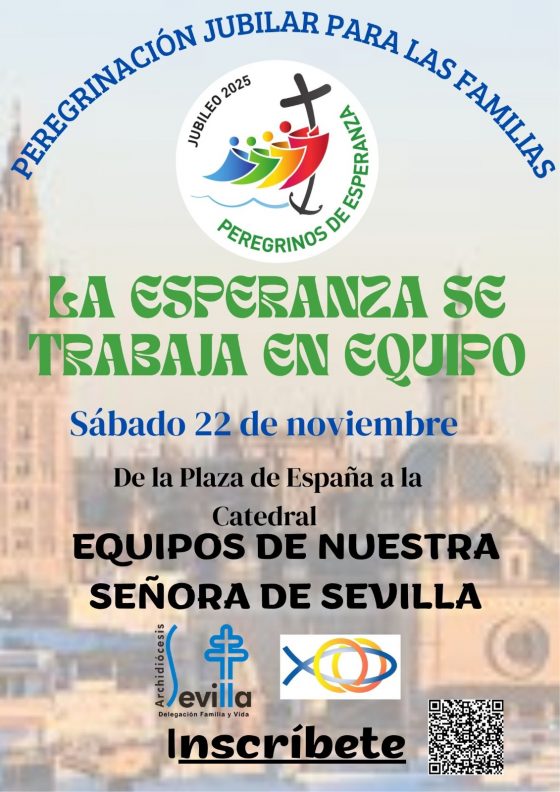 Esta pastoral organizará también una peregrinación de familias “con el objetivo de ganar el Jubileo en la Catedral, con familias de toda la Archidiócesis y de los Equipos de Nuestra Señora. La cita será el 22 de noviembre y se iniciará con una peregrinación desde la Plaza España hasta la Catedral, está prevista una parada en la capilla del Rectorado donde los participantes tendrán un espacio de reflexión, luego emprenderán el camino a la Seo hispalense para celebrar juntos la Eucaristía a las ocho de la tarde.