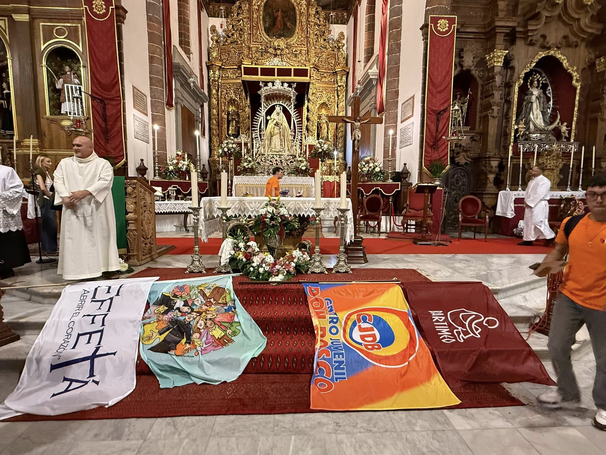 Tras el testimonio de Silvia, se reanudó el concierto con un setlist más animado. Con el himno “Bendito sea Dios que da la vida”, la imagen de la Virgen de Candelaria regresó al interior del templo. Los jóvenes de la diócesis se mostraron muy satisfechos con la celebración de este día. Algunos de ellos portaron pancartas con mensajes como “Al cielo se llega en equipo”, “María, candela de esperanza” o “No estamos locos, ni estamos solos”.