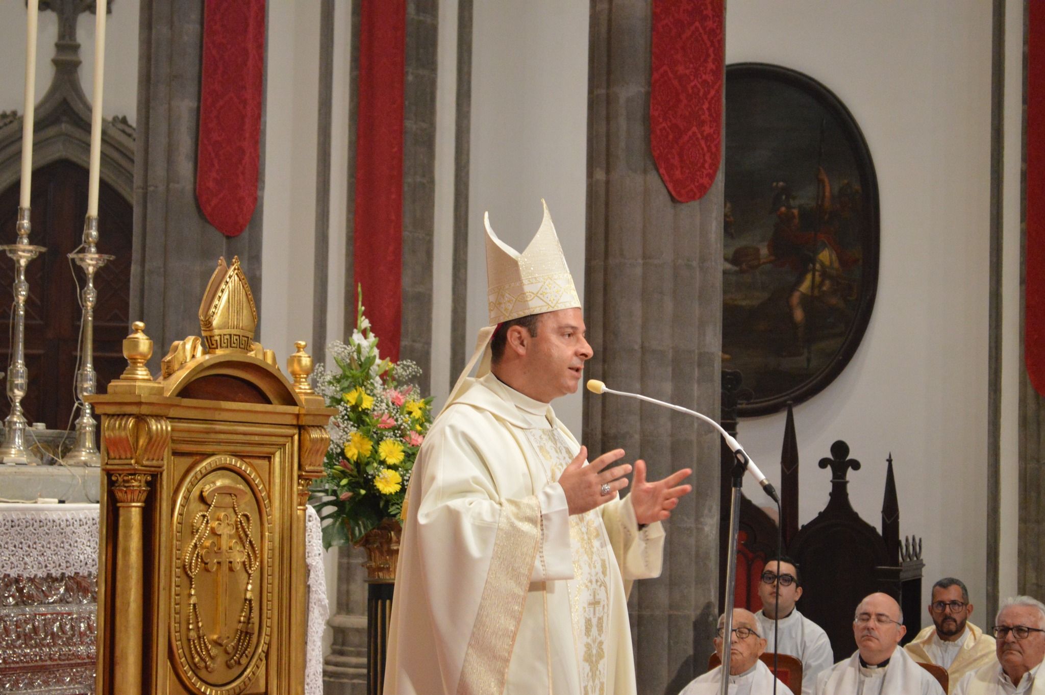 En torno a las 12:00 h., el obispo Nivariense, Eloy Santiago, presidió la Eucaristía. En su homilía, el prelado Nivariense destacó que la misericordia de Dios es lo que llena el corazón de júbilo. “La misericordia que un día nos llamó a la vida sacerdotal o diaconal. Por eso, hoy se nos invita a estar jubilosos. Deseo que el Espíritu Santo convierta nuestra alegría en testimonio contagioso para los demás. De forma especial, para aquellos jóvenes que puedan tener la inquietud a la vocación sacerdotal o diaconal”.