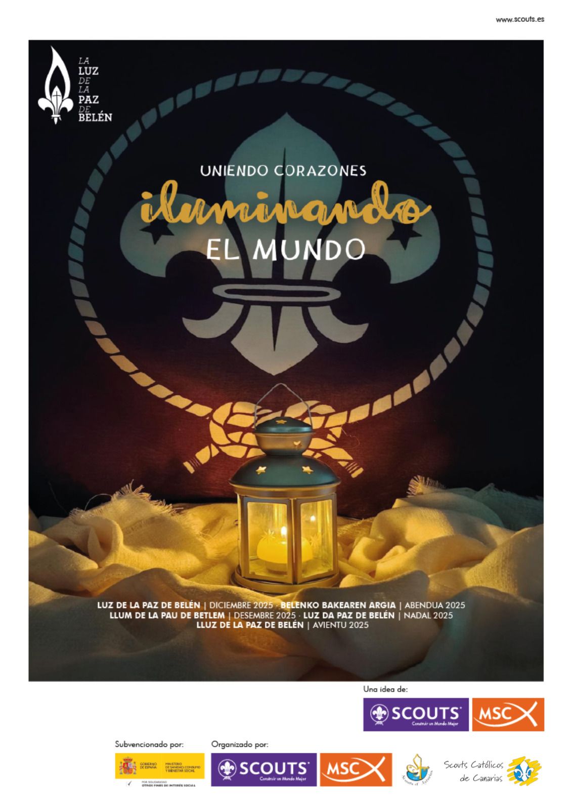 Scouts Católicos de Canarias anuncia la llegada a nuestras islas de la Luz de la Paz de Belén, una luz que cada año recorre el mundo entero como símbolo de fraternidad, esperanza y compromiso con la paz. La Luz, encendida en la gruta del Nacimiento de Jesús, volverá a ser compartida con las comunidades cristianas de Tenerife, Gran Canaria y Fuerteventura en tres celebraciones.
