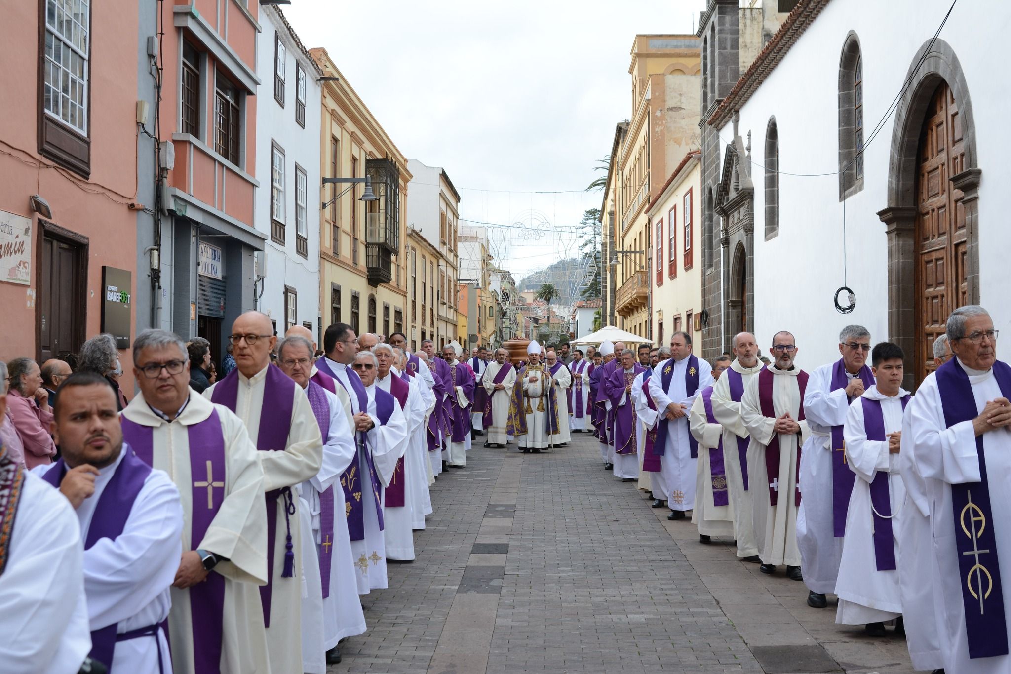 Antes de la celebración de la Eucaristía, presidida por el obispo Nivariense, Eloy Santiago, la comitiva partió desde la iglesia del Hospital de Dolores hasta el principal templo de la Diócesis, donde fueron inhumados los restos mortales de D. Bernardo.