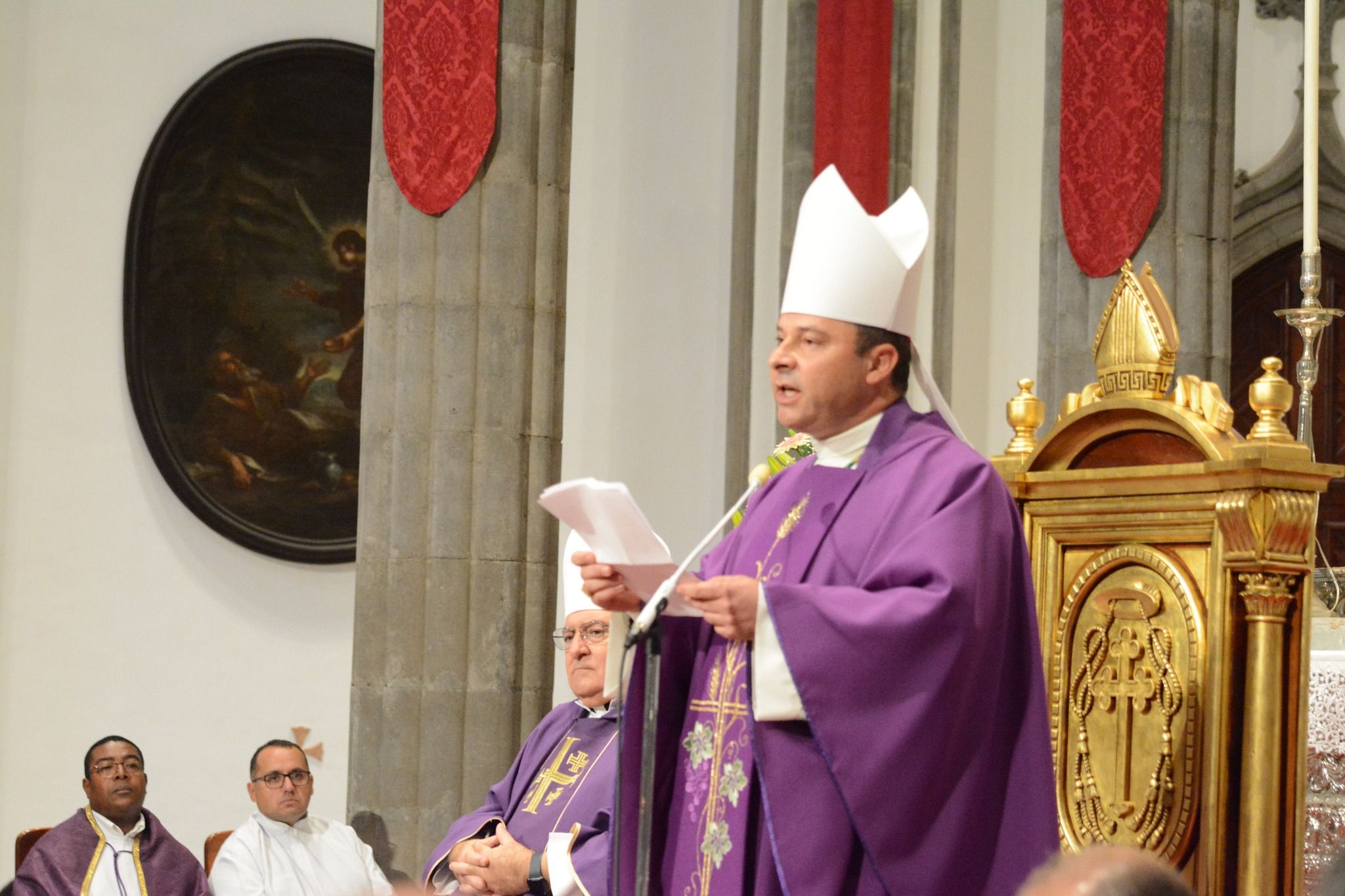 Eloy Santiago comenzó su homilía expresando que esta Iglesia particular de las Canarias occidentales hoy se reúne en torno a Cristo, no por el dolor, sino por la esperanza. “Nos sentimos hoy unidos en profunda comunión, no por la tristeza humana que nos ha causado la muerte de nuestro querido D. Bernardo, sino, sobre todo, por la esperanza que da sentido a esta celebración”.