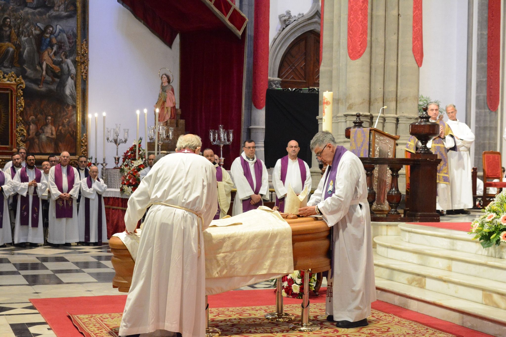 En la misa, cantada por el Coro Epifanía, concelebraron el obispo titular de la Diócesis Canariense, José Mazuelos, y el auxiliar, Cristóbal Déniz. Asimismo, estuvieron presentes familiares del obispo emérito, un buen número de sacerdotes y religiosos, amigos y diversas responsabilidades. Entre ellas, el presidente del Gobierno de Canarias, Fernando Clavijo; el alcalde de La Laguna, Luis Yeray Gutiérrez y el teniente general jefe de mando de Canarias, Julio Salom.