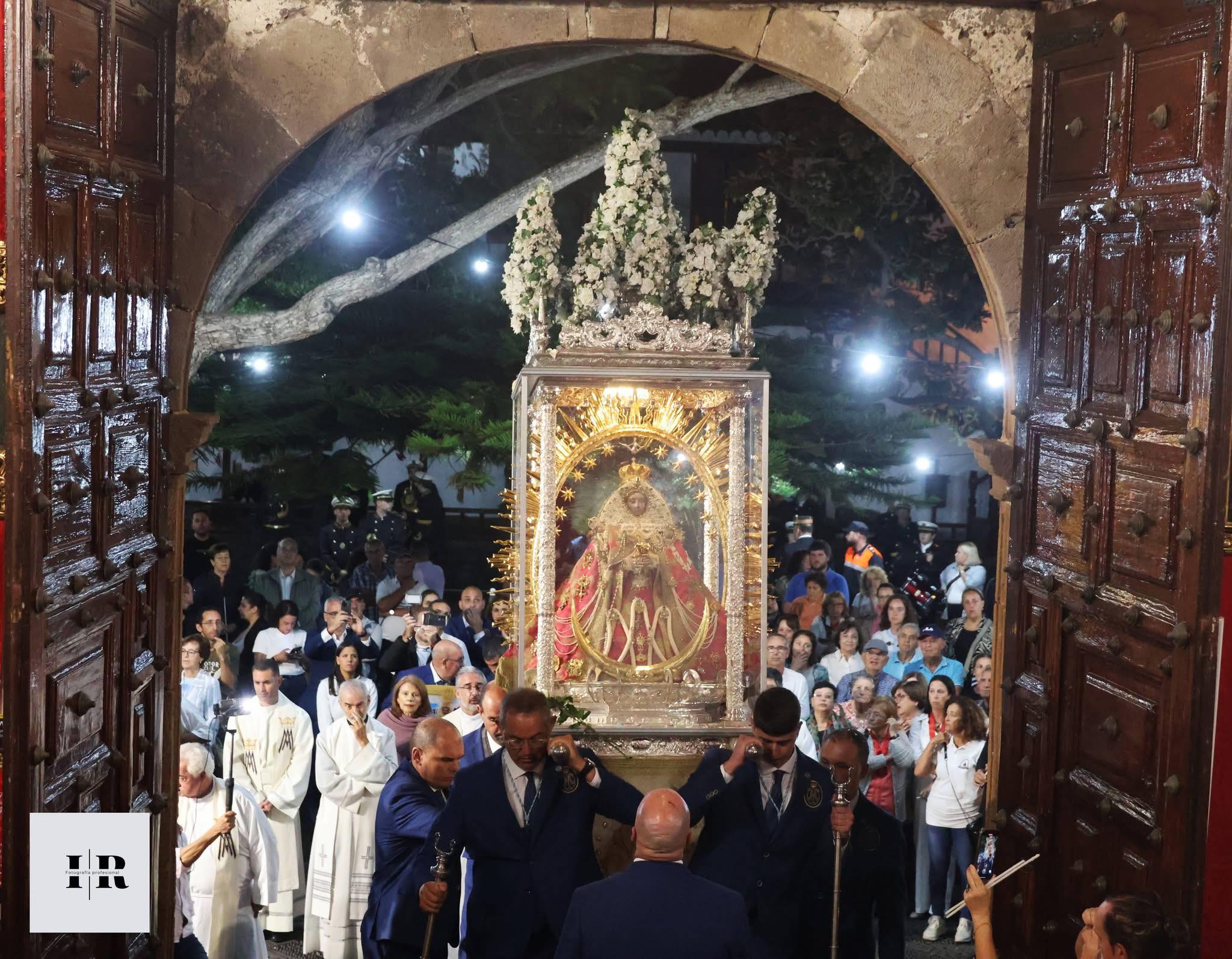 Santa Cruz de La Palma la despidió con una eucaristía en la parroquia de El Salvador presidida por el vicario general, Víctor Álvarez, y un entrañable acto junto al barco de la Virgen. Después, camino ya del santuario, parada en el centro de mayores de la Dehesa y en Velhoco.