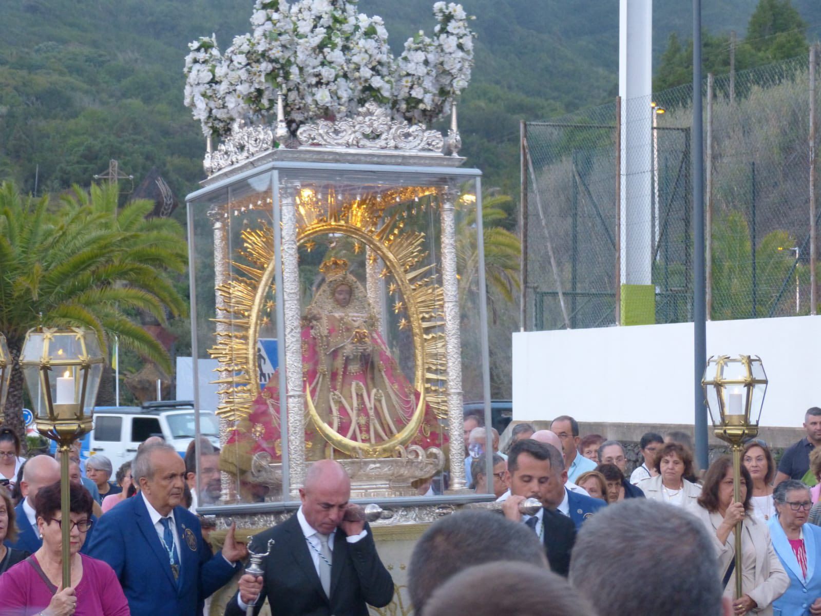 Tras la celebración en el Santuario, se partió rumbo al norte hacia Puntallana, primer municipio en recibir a la Virgen. La parroquia de San Juan Bautista fue el punto de encuentro para numerosos fieles y visitantes. El momento más emotivo de la jornada llegó con la Eucaristía de despedida. En la noche del sábado, la imagen de la patrona insular fue trasladada al municipio de San Andrés y Sauces, donde fue recibida con honores en un nuevo gesto de devoción popular. La imagen de la Virgen estuvo tanto en la parroquia de Nuestra Señora de Montserrat, como en San Andrés Apóstol.