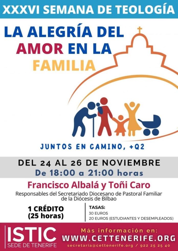 Del 24 al 26 de noviembre, en horario de 18:00 a 21:00 h., tendrá lugar la XXXVI Semana de Teología organizada por el ISTIC. En esta ocasión, en el marco del año dedicado a la familia, el tema de las jornadas girará en torno a “La alegría del amor en la familia. Juntos en camino, +Q2”.